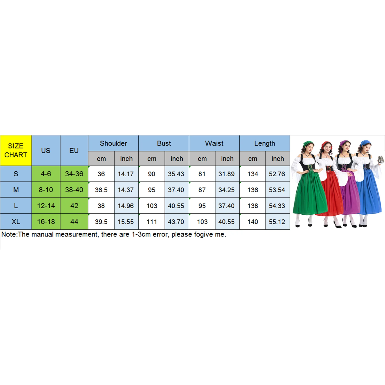 Vintage Halloween Women Maid Outfit Long Sleeve Cold Shoulder Patchwork Long Dress with Hair Scarf Cosplay Costume