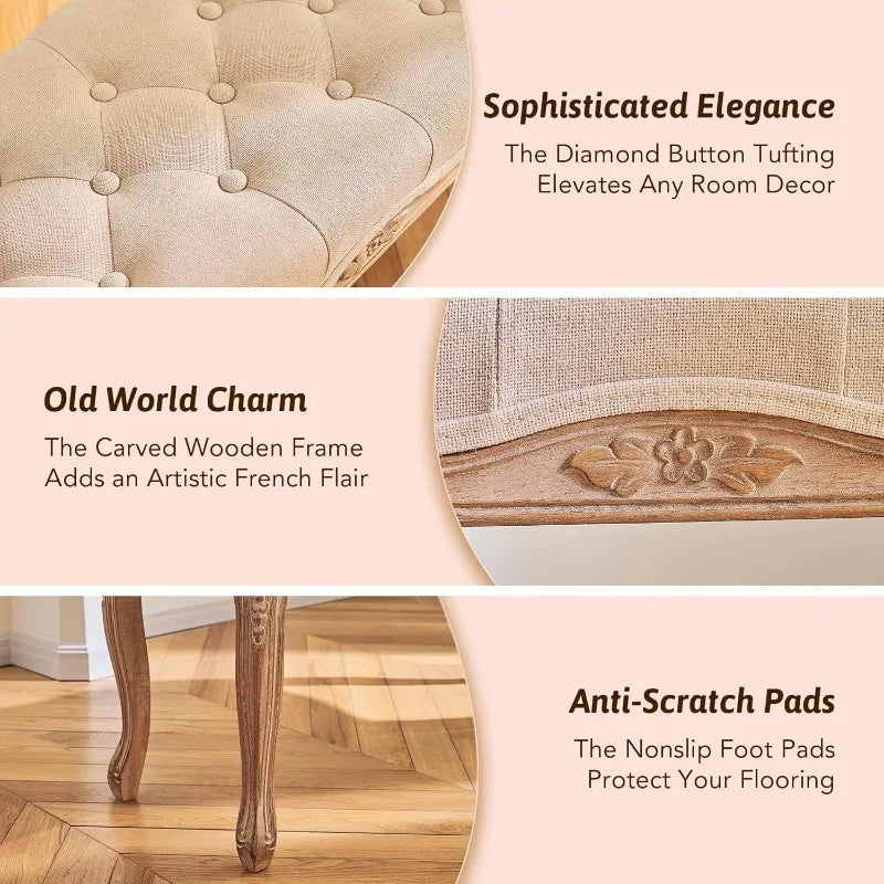 - SIMPLE SETUP: Vonluce’s intuitive design and clear instructions guide quick and easy assembly of this button tufted bench, simply align the legs, tighten their bolts, and enjoy!