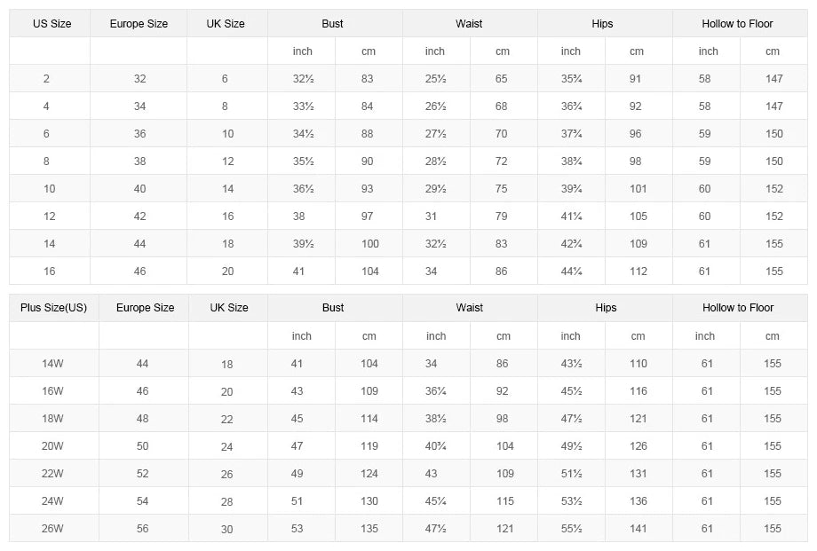 us 20w bust :119cm waist :104cm hips :126cm hollow to hem :155cm height :175cm