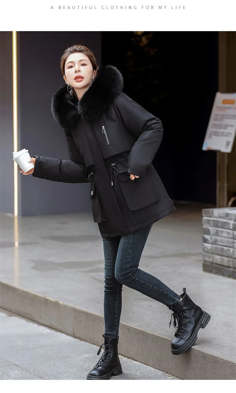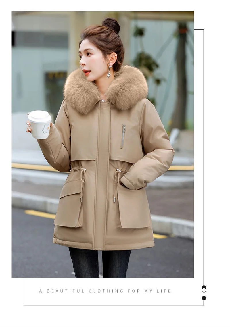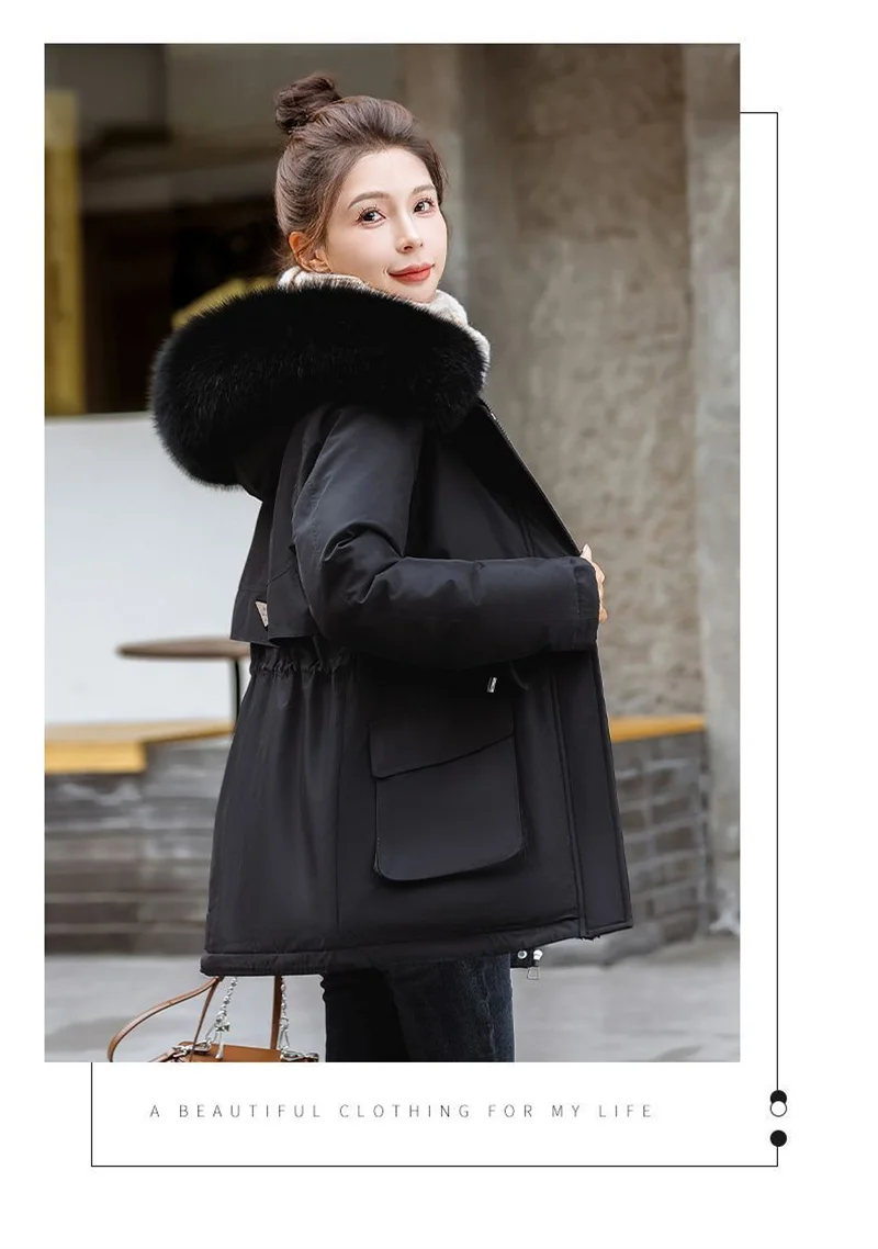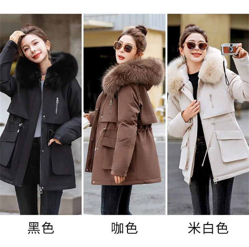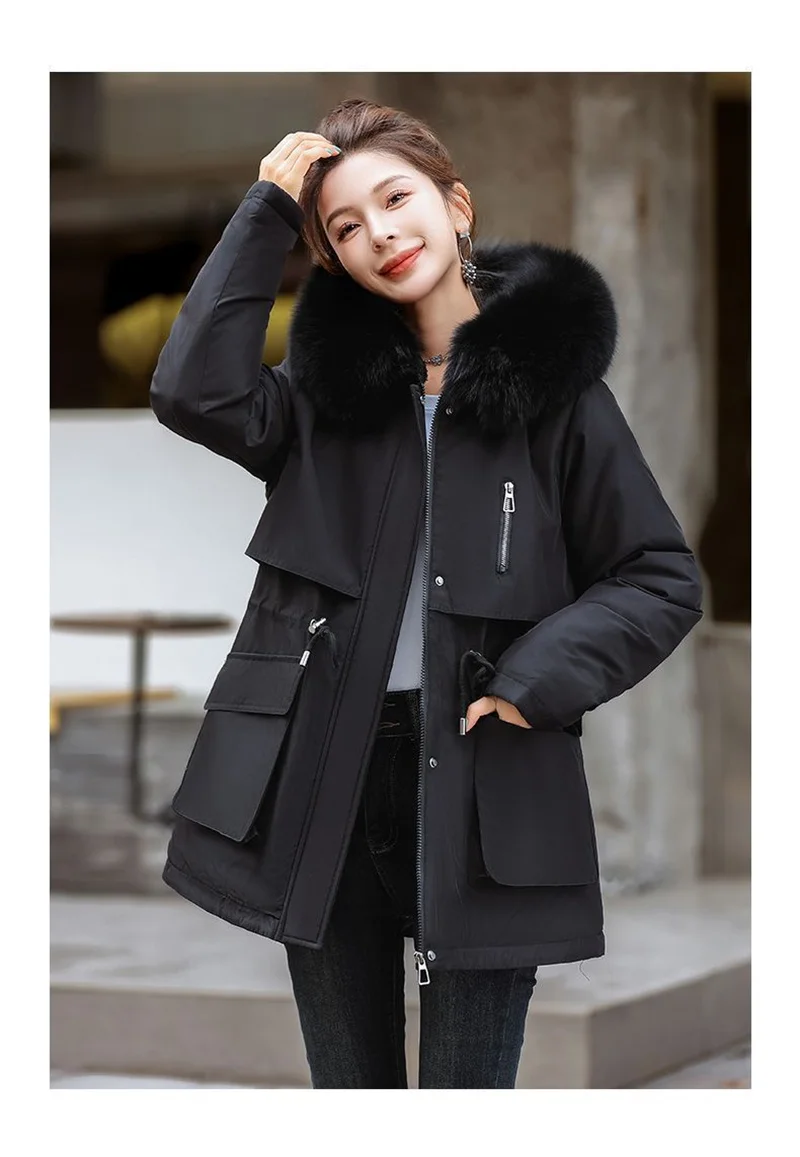 Winter Jacket Coat Women Loose Casual All-Match Thick Hooded Fur Collar Down Cotton Padded Jackets Female Warm Parkas Outwear