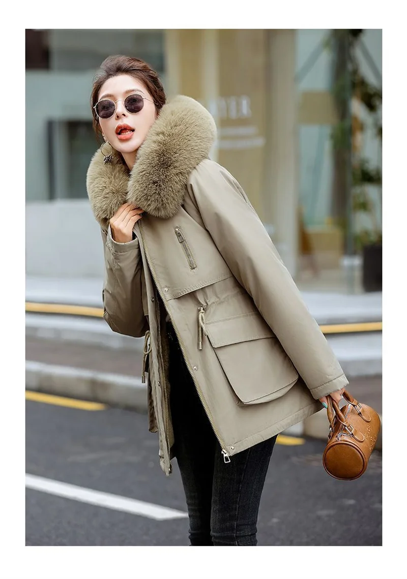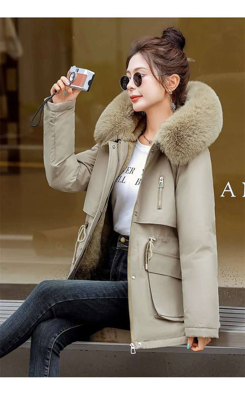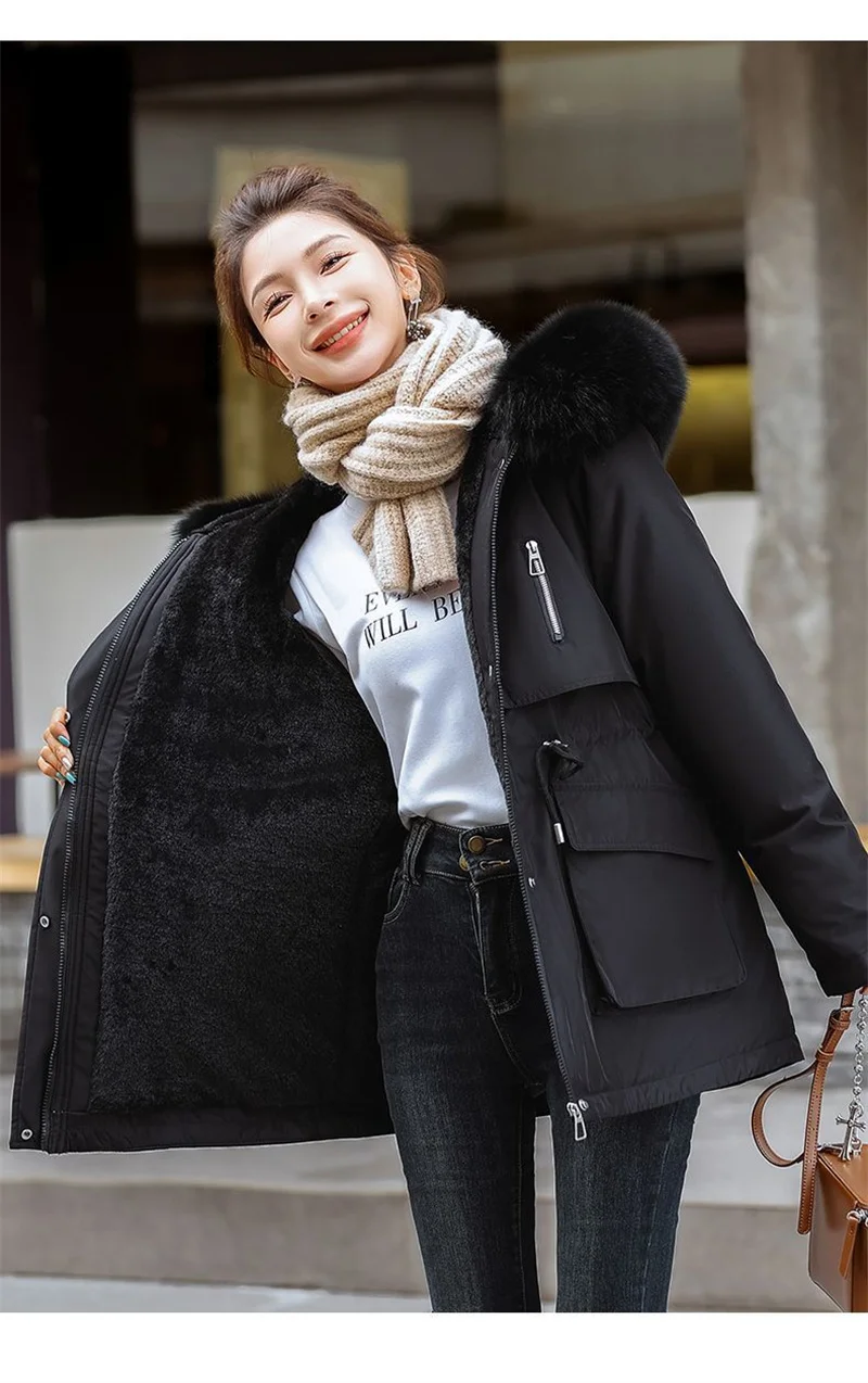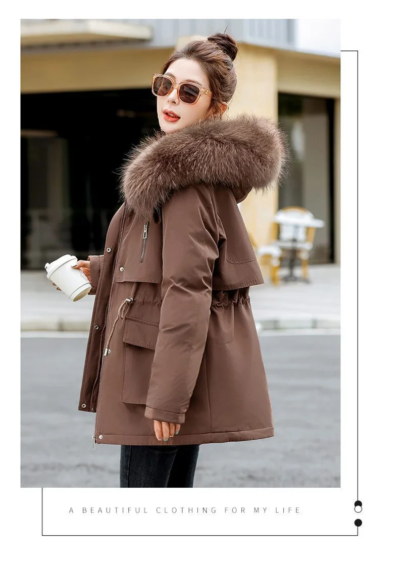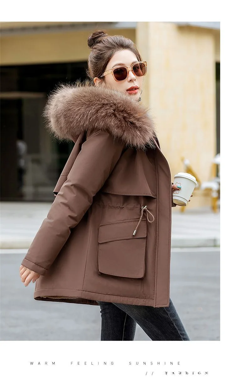 Winter Jacket Coat Women Loose Casual All-Match Thick Hooded Fur Collar Down Cotton Padded Jackets Female Warm Parkas Outwear