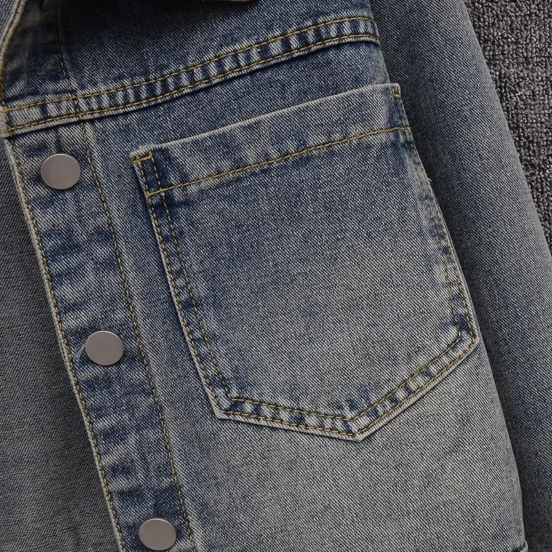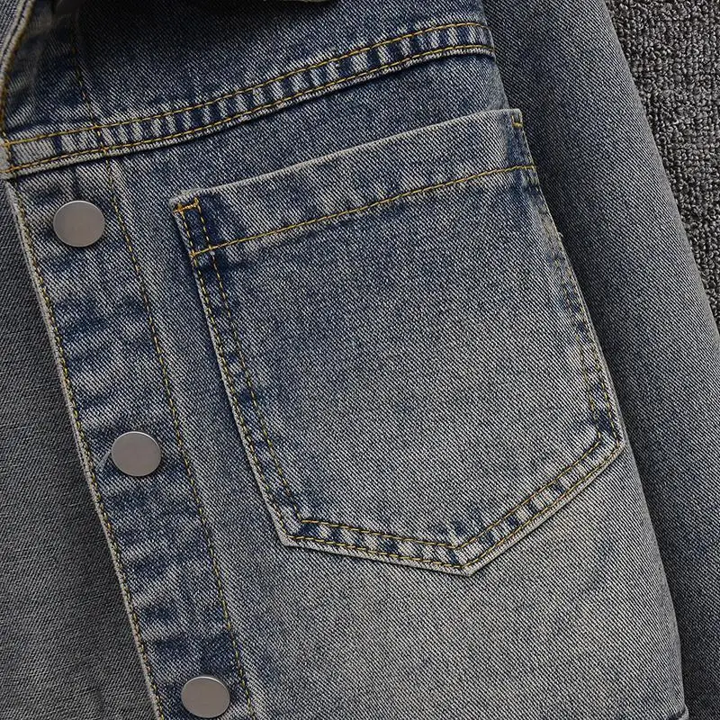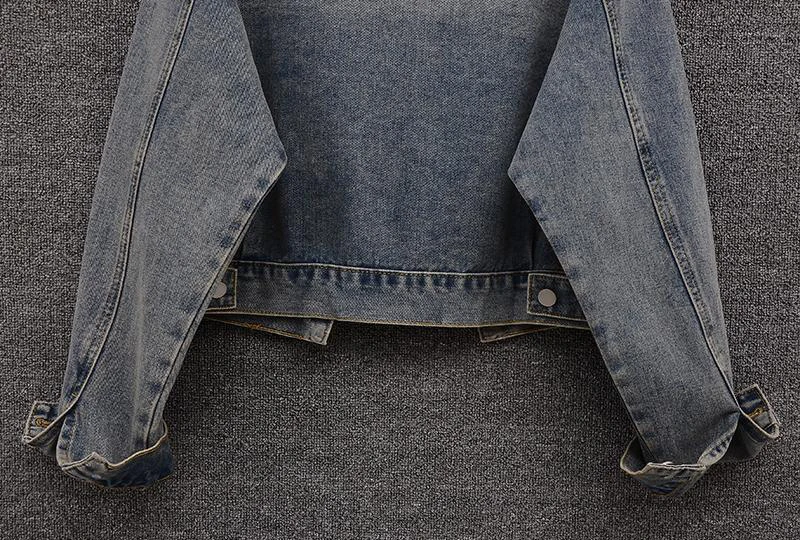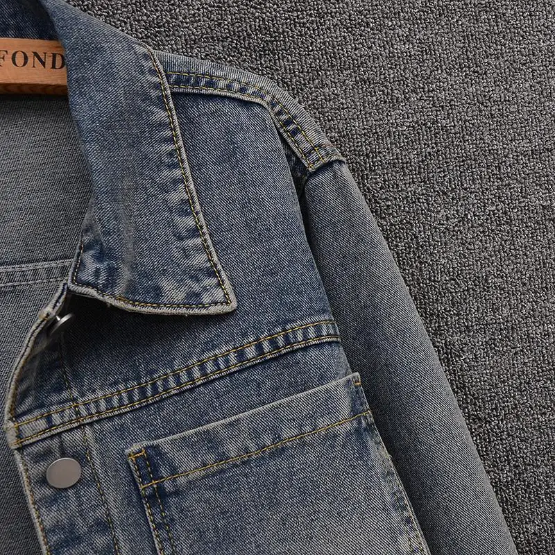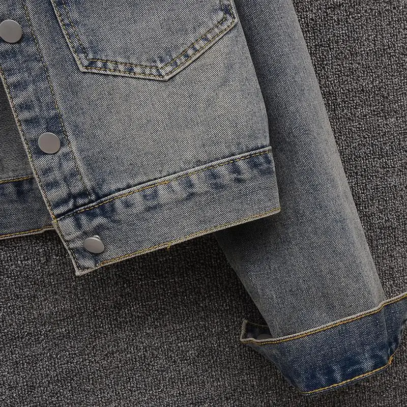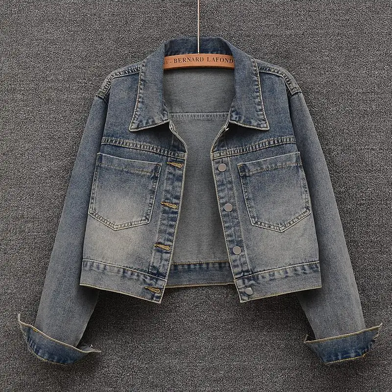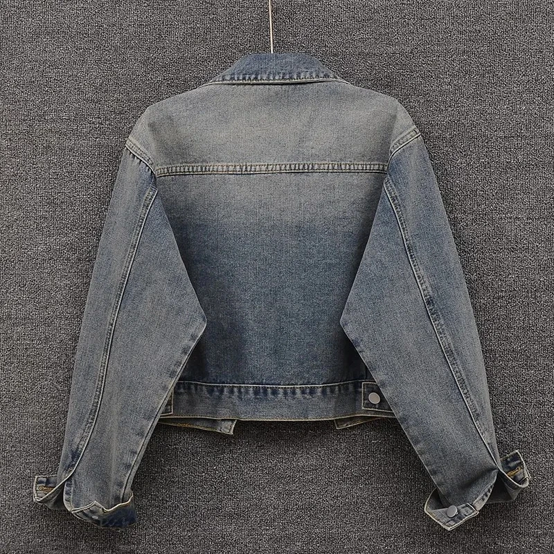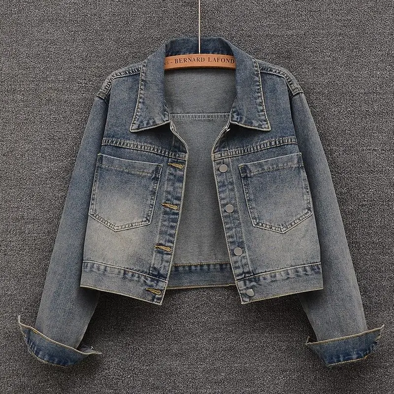 Women Vintage Cropped Denim Jacket Classic Harajuku Y2K Blue American Coat Loose Casual Simple Turn Down Collar Top