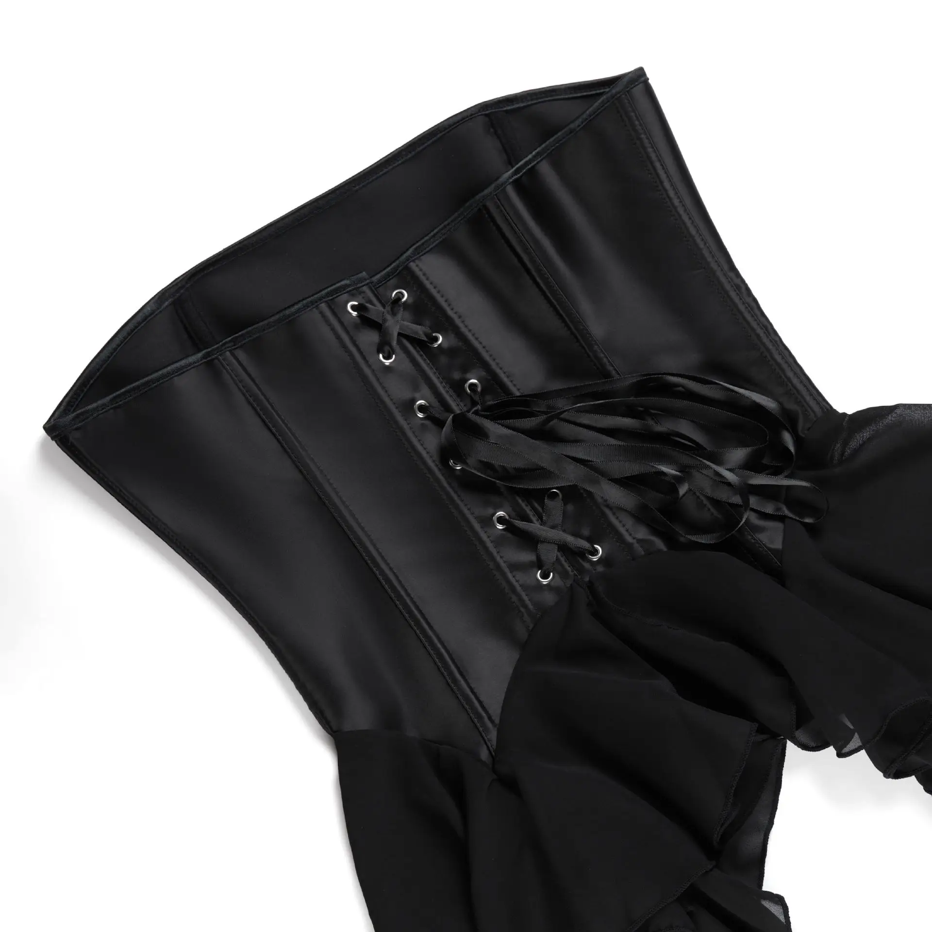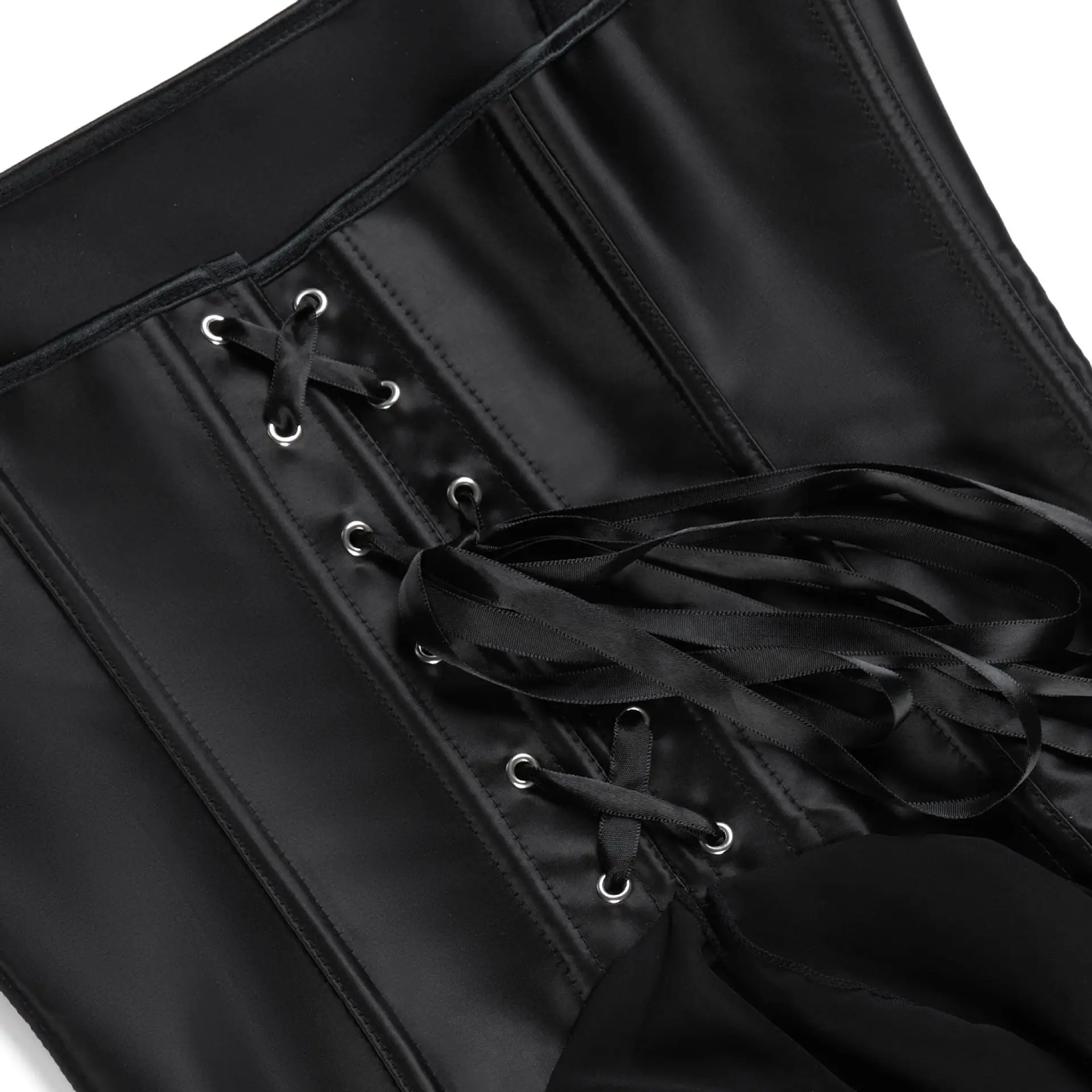 Womens Corset Dress Satin Overbust Bustier Waist Cincher Body Shaper Sexy Lingerie Lace Skirt Corsets