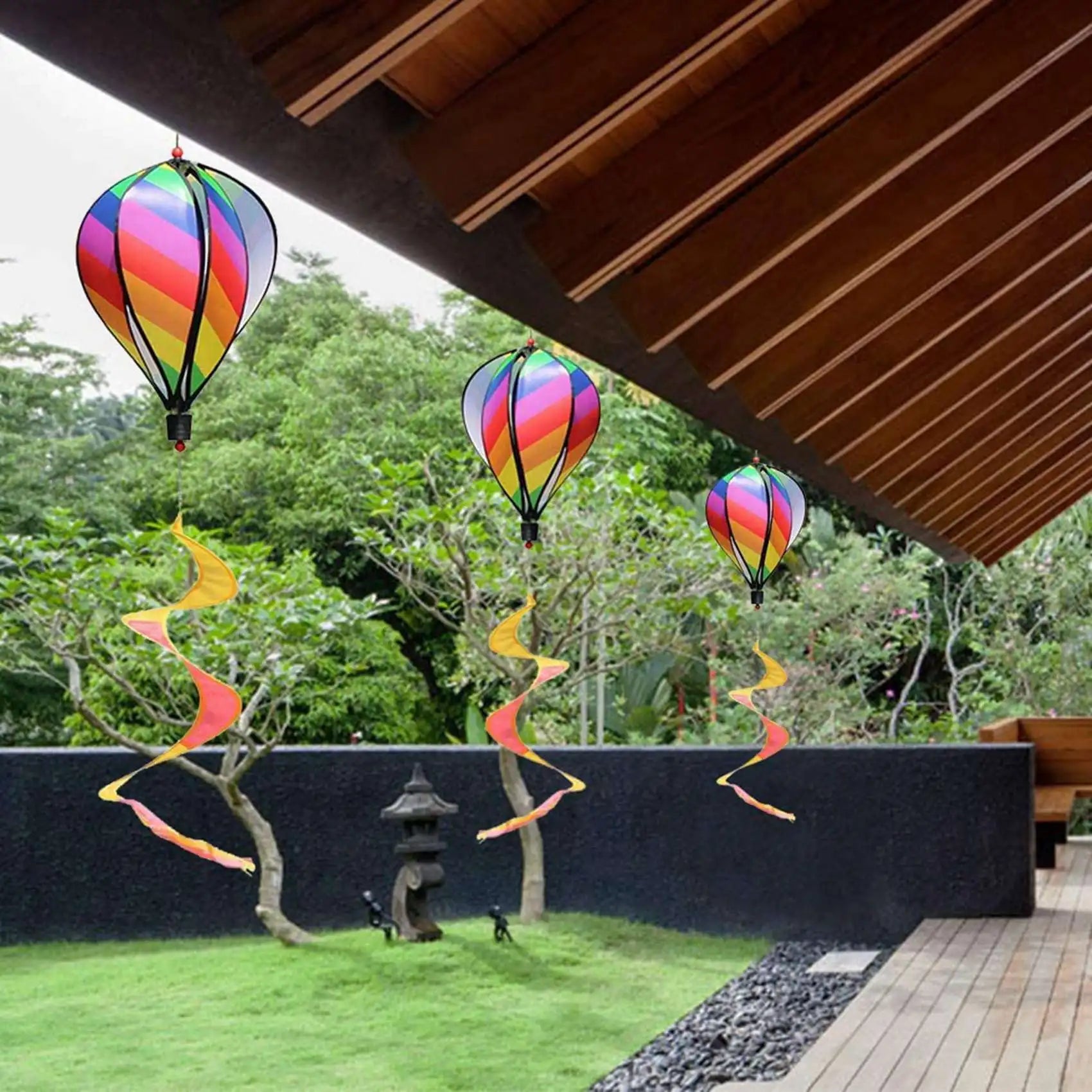 2.ENJOY COLOR IN MOTION: When the hot air balloon is suspended in the air, the balloon and the wind strip will rotate with the wind. Each of the six panels is printed with the same colorful pattern. As the balloon rotates, the printed panel appears to be moving. Hot air balloons have excellent visual appeal when rotating in the wind.