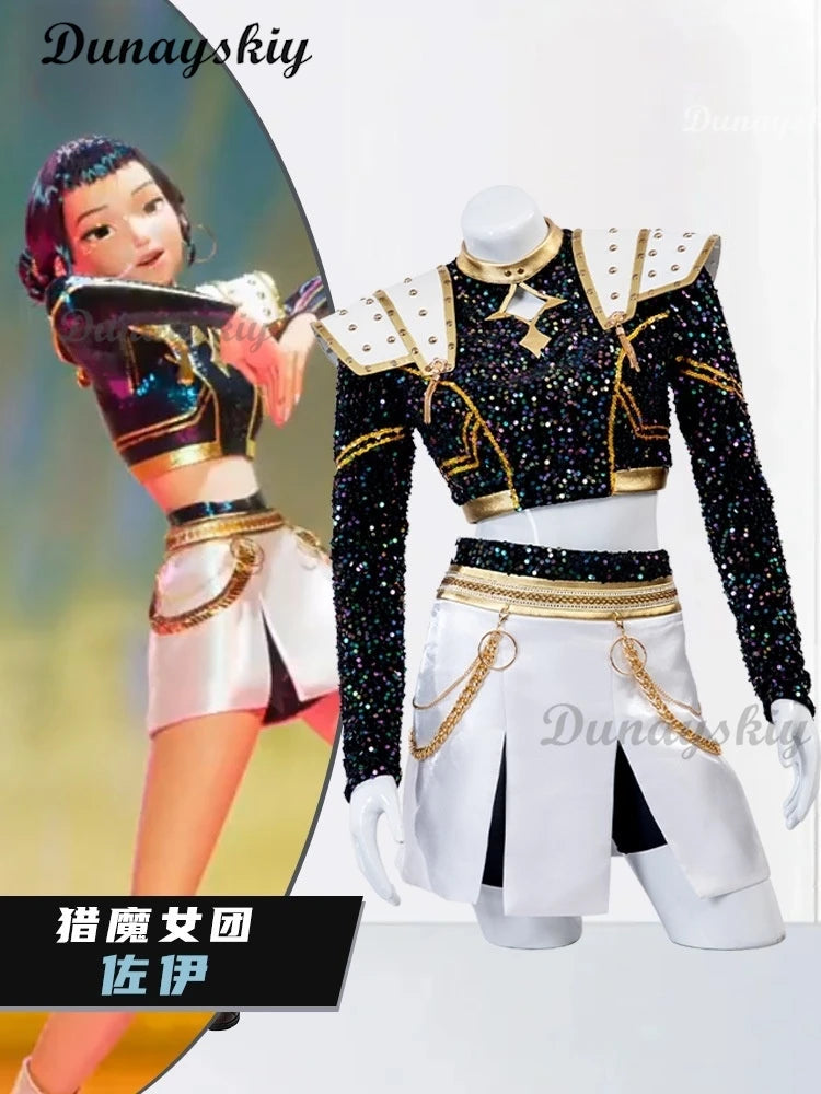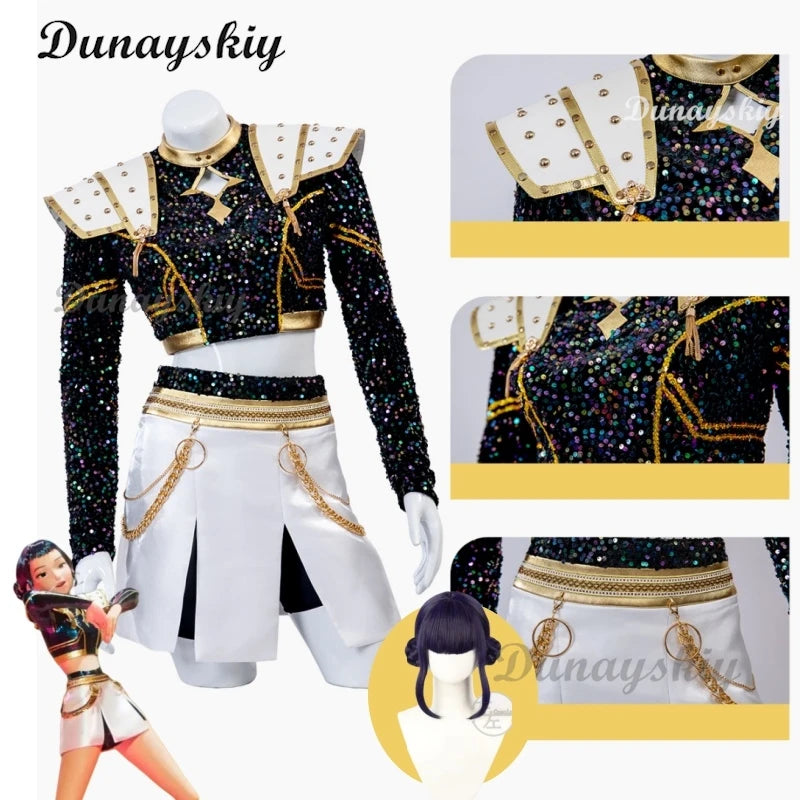 Zoey Cosplay Anime KPop Demon Hunters Costume Wig Coat Skirt Neckwear Tassels Props Huntrix Dress For Women Girls Huntrix Party